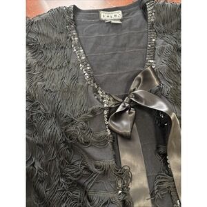 Berek VTG 90s Fringe Jacket Medium Tie Front Sequin Eclectic Party Going Out