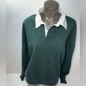 Aritzia Dark Green Rugby Shirt with White Collar - Unisex