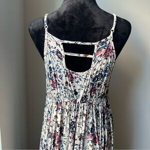 Elegant dress with floral pattern. Lightweight and flowy. Adorable back! Adjustable straps.