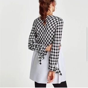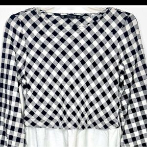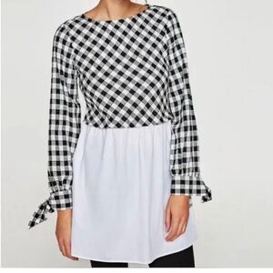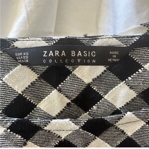 Zara Gingham Poplin Checkered Black & White Tunic Short Dress Top, Size XS