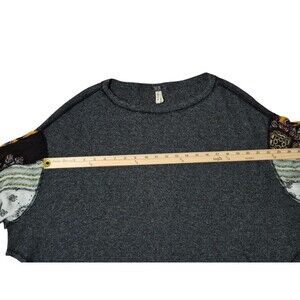 We The Free L Top Blossom Thermal Waffle Knit Puff Sleeves Patchwork Artsy Boho