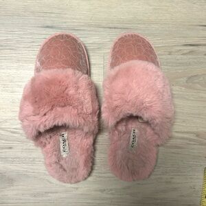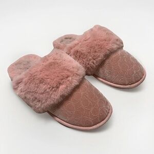 Coach Slippers Signature Suede Sherpa Slip On Mule Pink Women 8 Cozy Fuzzy Soft