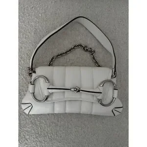Gucci Small Leather white Horsebit Chain Satchel NWT