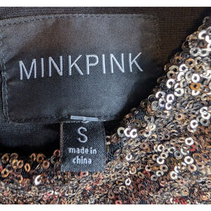 Minkpink Gold Sequin Sparkly Bodycon Glam Club Puff Shoulder Mini Dress Small