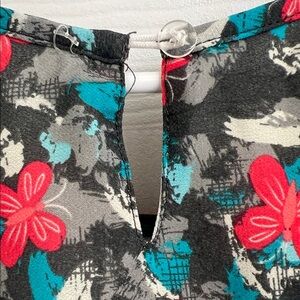 • Colors: Gray base with red and teal floral print, pink lace detail