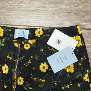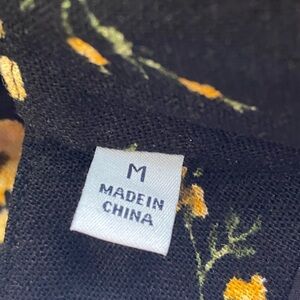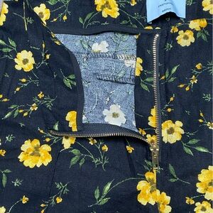 Linen blend black fabric with yellow flowers