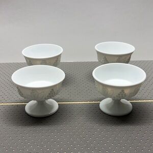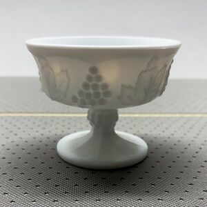 VTG INDIANA HARVEST GRAPE MILK GLASS FOOTED SHERBET/DESSERT PEDESTAL BOWL