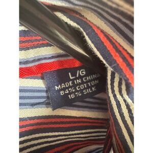 Tommy Bahama Men's Large Red Blue Striped Button Up Dress Shirt Silk Blend