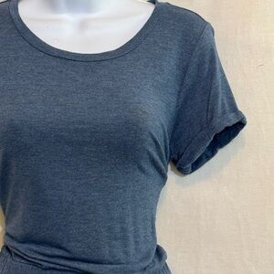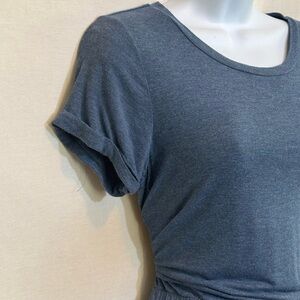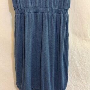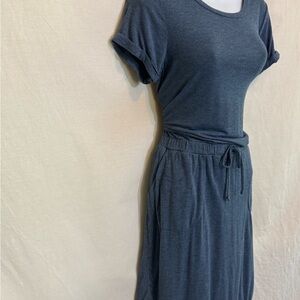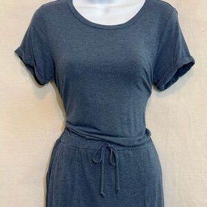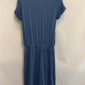 32 Degrees Cool Blue, Scoop neck, Short, cuffed Sleeve, Pullover, Elastic Waist, Mid length Dress. Front pocket on each side. Casual & comfy. Lightweight. Soft & stretchy. Blended material. Gently used with no stains or flaws.