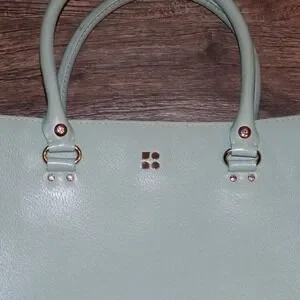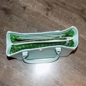Keywords: Kate Spade, satchel, mint green, pebbled leather, handbag, designer purse, pastel, spring style, triple compartment, gold hardware, preppy, classic, everyday bag, tote