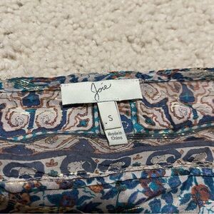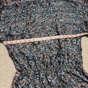 Elegant top with intricate blue and gold patterns. Lightweight and stylish.