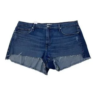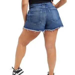 Good American Good 90’s Denim Cut Off Shorts Size 20 High Waisted Raw Hem