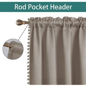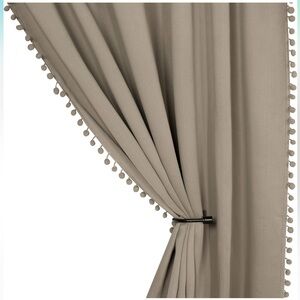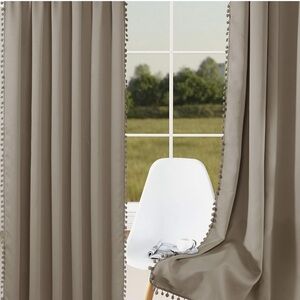 Pom Pom Blackout Curtains Bedroom, 42 x 84” Khaki, Set of 2 Panels Thermal