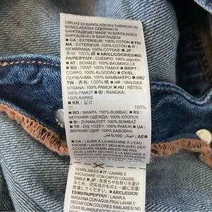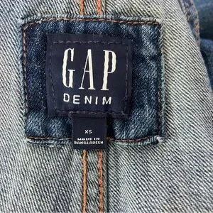 GAP Relaxed Ankle Denim Overalls. Medium Indigo wash with whiskering and fading.