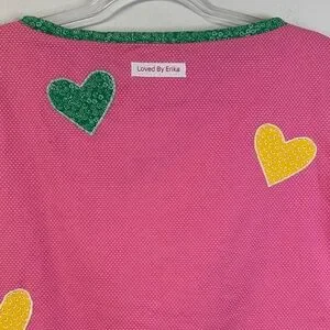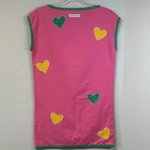 NWT Handmade by Erika Cotton Pink Heart Mini Dress Size S