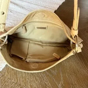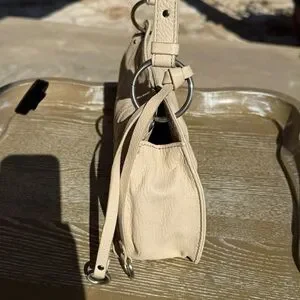 Alfani Pebbled Leather Shoulder Bag Pleated Beige/Cream/Tan Magnetic Closure