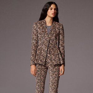 Add some leopard print to your life with the Rebecca Taylor Leopard Print Velveteen Jacket in Caramel Combo. Constructed from a cotton blend fabric this collarless piece features padded shoulders, long sleeves, a centre front button opening and pleated detailing at extending to the hem.