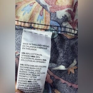 Bold Chico's button-front blouse with an eye-catching paisley print in rich, saturated fall tones. This piece leans true boho with a retro, festival-ready feel and an artsy, statement look. Size Chico's 2.5 with an approximate 22 inch pit-to-pit measurement for a relaxed, flattering fit. Made from a soft cotton blend with stretch that drapes comfortably and wears easily all day.