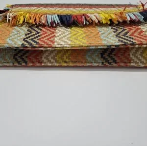 J Crew Raffia Rainbow Clutch With Detachable Crossbody Handle