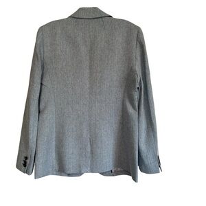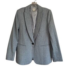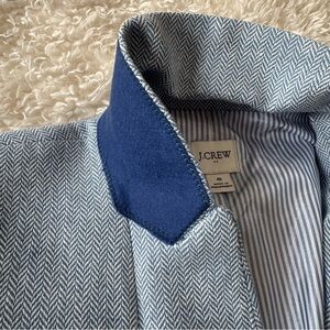 J Crew Factory Blue Herringbone One Button Blazer Linen Cotton Preppy Size 8