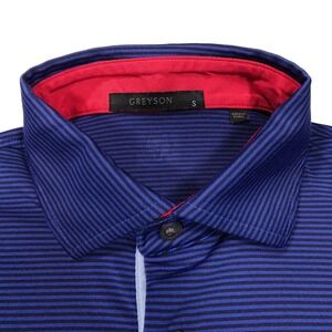 GREYSON Men's Size S Blue Black Striped Short Sleeve Performance Golf Polo Shirt