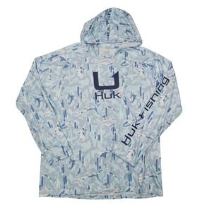 HUK Men's XL Gray Blue UPF50 Icon Performance Long Sleeve Hoodie Shirt BUNDLE
