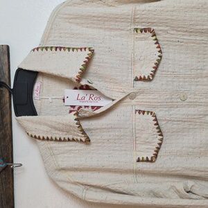 La Ros Bohemiam Sea Linen Embroidery Jacket Large Nwt