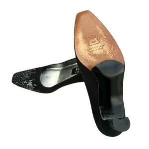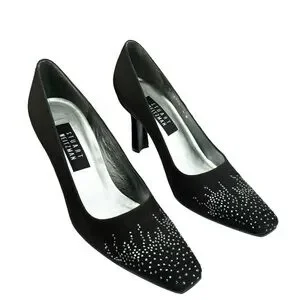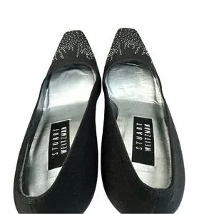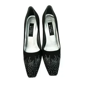 Stuart Weitzman Heels Crystal Embellishment Satin Black Pumps