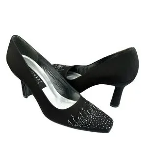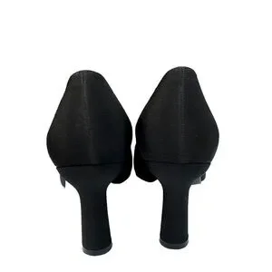 Stuart Weitzman Crystal Embellishment Black Satin Fabric Evening Pumps