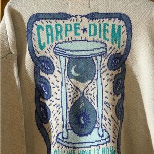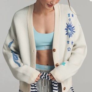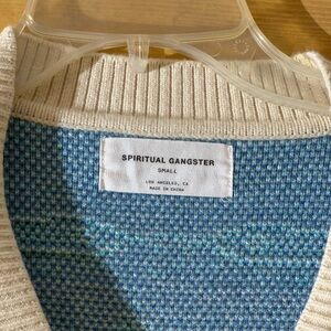 Spiritual Gangster Cream and Blue Knit Sweater, Anthropologie