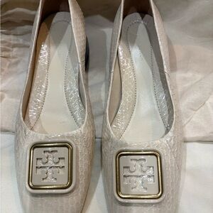 Tory Burch Square Toe Ballet Flats – Cream Embossed Leather – Size 7.5