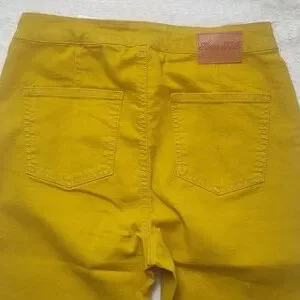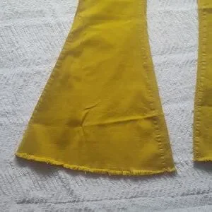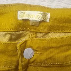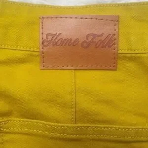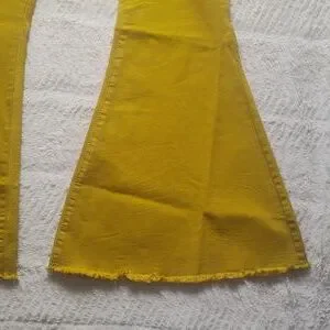 absolutely gorgeous mustard yellow home folk jeans/pants wide flare size 12. these are brand new with tag. the little button has paper protecting it from scratches awesome detail. please take a look at the photos for actual size reference. if you have any questions don't hesitate to ask. thank you for looking and God bless
