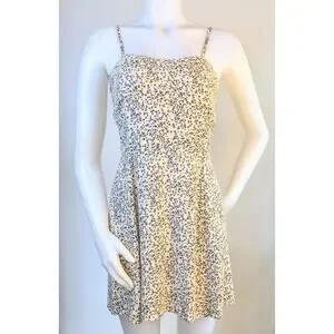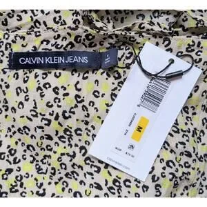 Calvin Klein Skater Minidress Sundress Medium Beige Black Leopard Print NEW