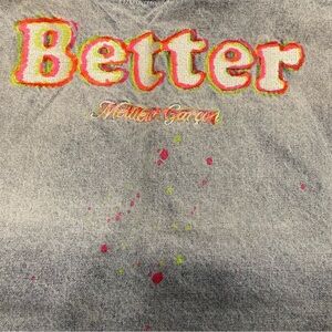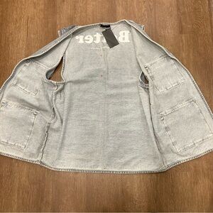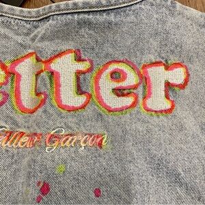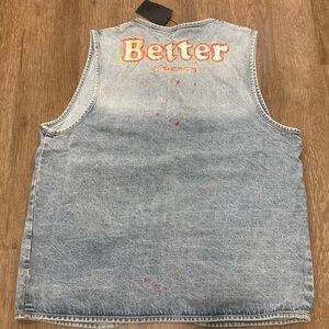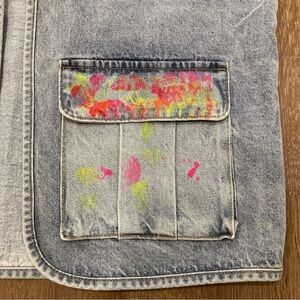 Men’s Light Wash Blue Jean Vest Neon Paint Splatter Open Front Pockets L