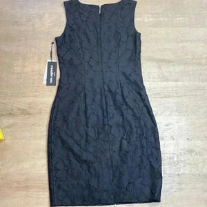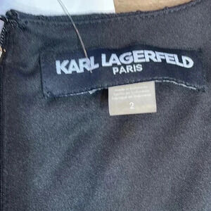 NWT Karl Lagerfeld eyelet black dress, size 2, polyester slip underneath. Size 2, but I fit it comfortably and wear size 4 with most dresses.
