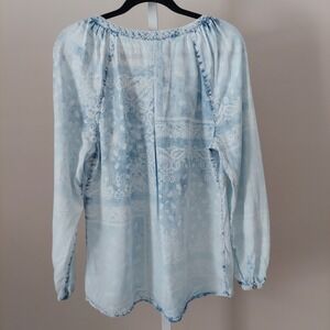 Keywords: Boho, Peasant, Paisley, Lyocell, Light Wash, Coastal, Cottagecore, Relaxed Fit, Embroidered, Tencel, Blue and White, Summer, Spring, Casual, Bohemian