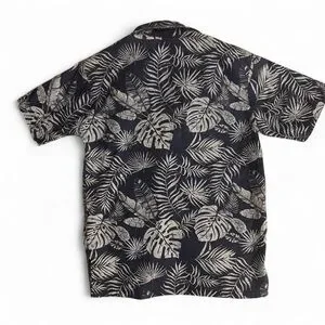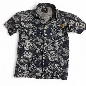 American Hawk Boys 5 Hawaiian Shirt Navy Blue Tropical Leaf Button Down Top