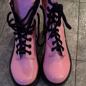 Soda Pink Combat Boots with Black Laces