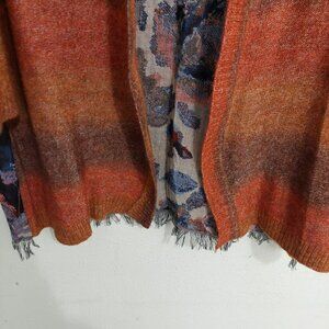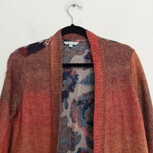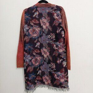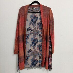 John Mark Open Duster Cardigan Sweater OMBRE Front FLORAL FRINGE Back Boho Sz S