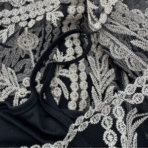 Ultra Pink Black and Cream Gold Sheer Embroidered 3/4 Sleeve Tank Blouse Large