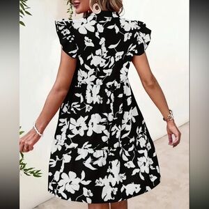 Floral Print V Neck Dress, Elegant Ruffle Sleeve Dress For Spring & Summer. 100% Polyester.