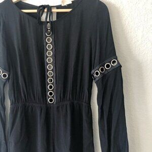 Boutique AMT Open Back Black & Silver Bell Sleeve Long Sleeve Romper S