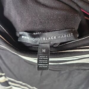 Elevate your wardrobe with this stunning White House Black Market maxi skirt with beaded side ties. Crafted with a flattering black/white/hot pink striped pattern, this skirt features a fold over waist and side vents for added style and comfort. The stretchy fabric ensures a perfect fit, while the long length adds a touch of elegance. Perfect for any occasion, this skirt is a must-have for any fashion-forward woman. The size M skirt is suitable for regular size types and pairs well with any top or blouse. Add this White House Black Market skirt to your collection today and step out in style.