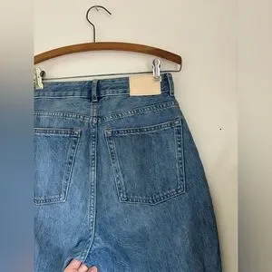 Everlane The Curvy 90s Cheeky Straight Jean in the color vintage mid blue- quality stiff denim, with a straight leg fit. High rise fit, and 100% organic cotton. Sold out online.