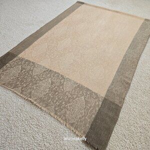 NWOT Cashmere Jacquard Lightweight Scarf Tan and Brown