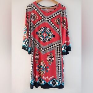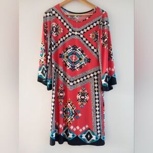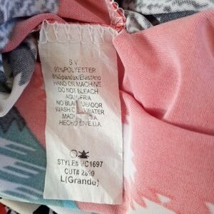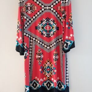 S V Geometric Print Long Sleeve Dress Pink Multi Color Size Large Style