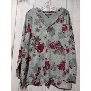 Ellen Tracy Shirt Ladies Extra Large Gray Red Floral Knit Light Weight Floral So