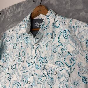 Wrangler Western Pearl Snap Long Sleeve Paisley Blue White Button Up L