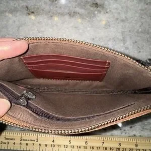 American bling brand. Leather with pink leopard print dyed cowhide on front. Stuffed around edges. See photos. 8"x4". One compartment with a smaller pocket inside. Chain strap is removable. One spot inside in hot pink. Otherwise clean and great.