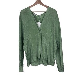 VINCE PISTACHIO GREEN BLOUSE DOUBLE V-NECK SILKY LONG SLEEVE PULL OVER TOP